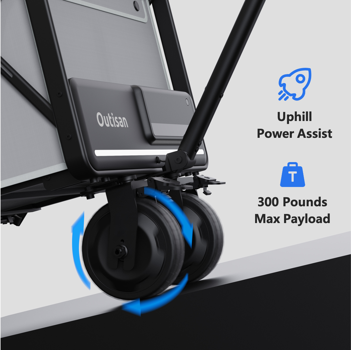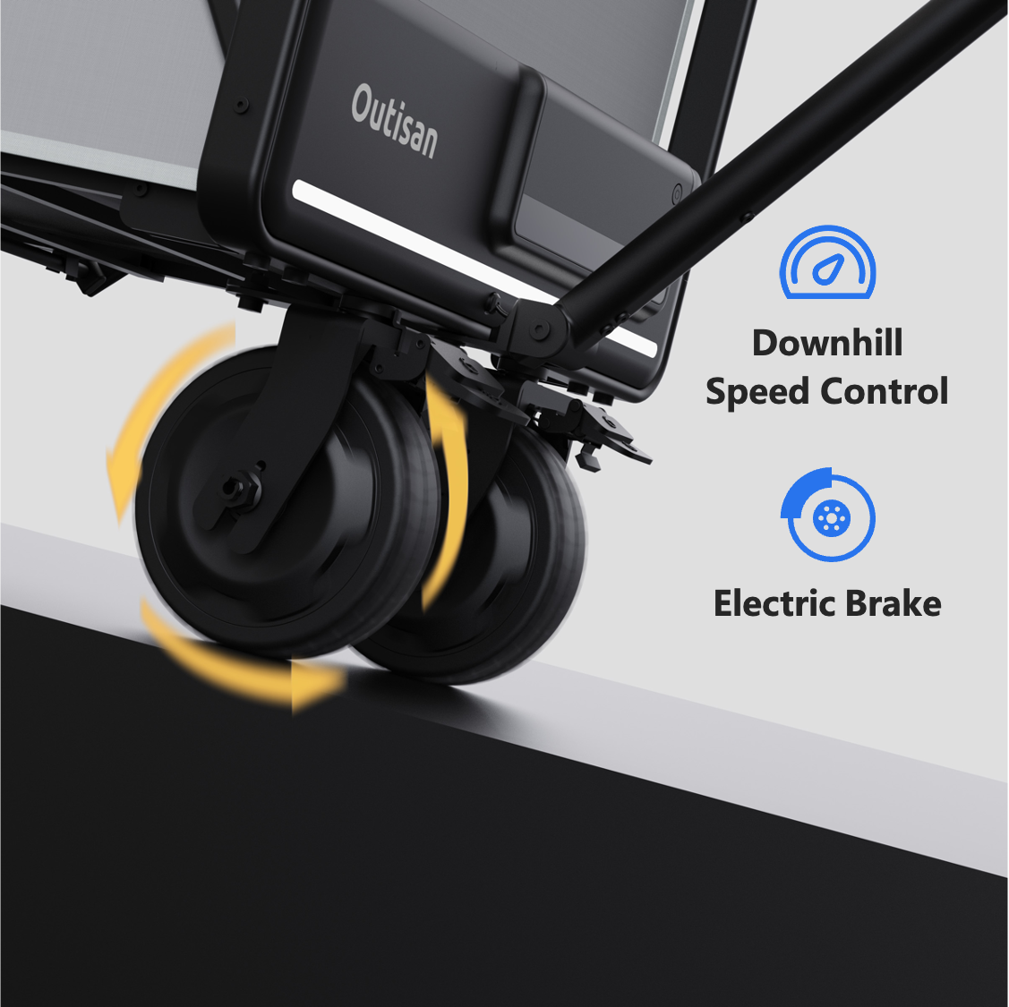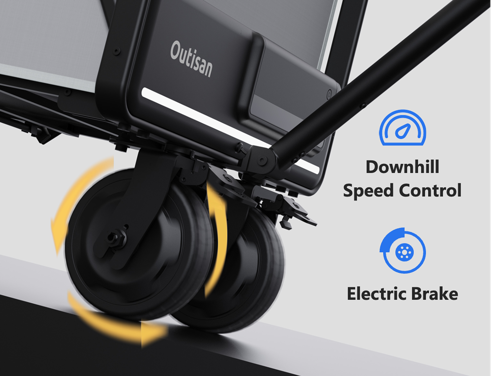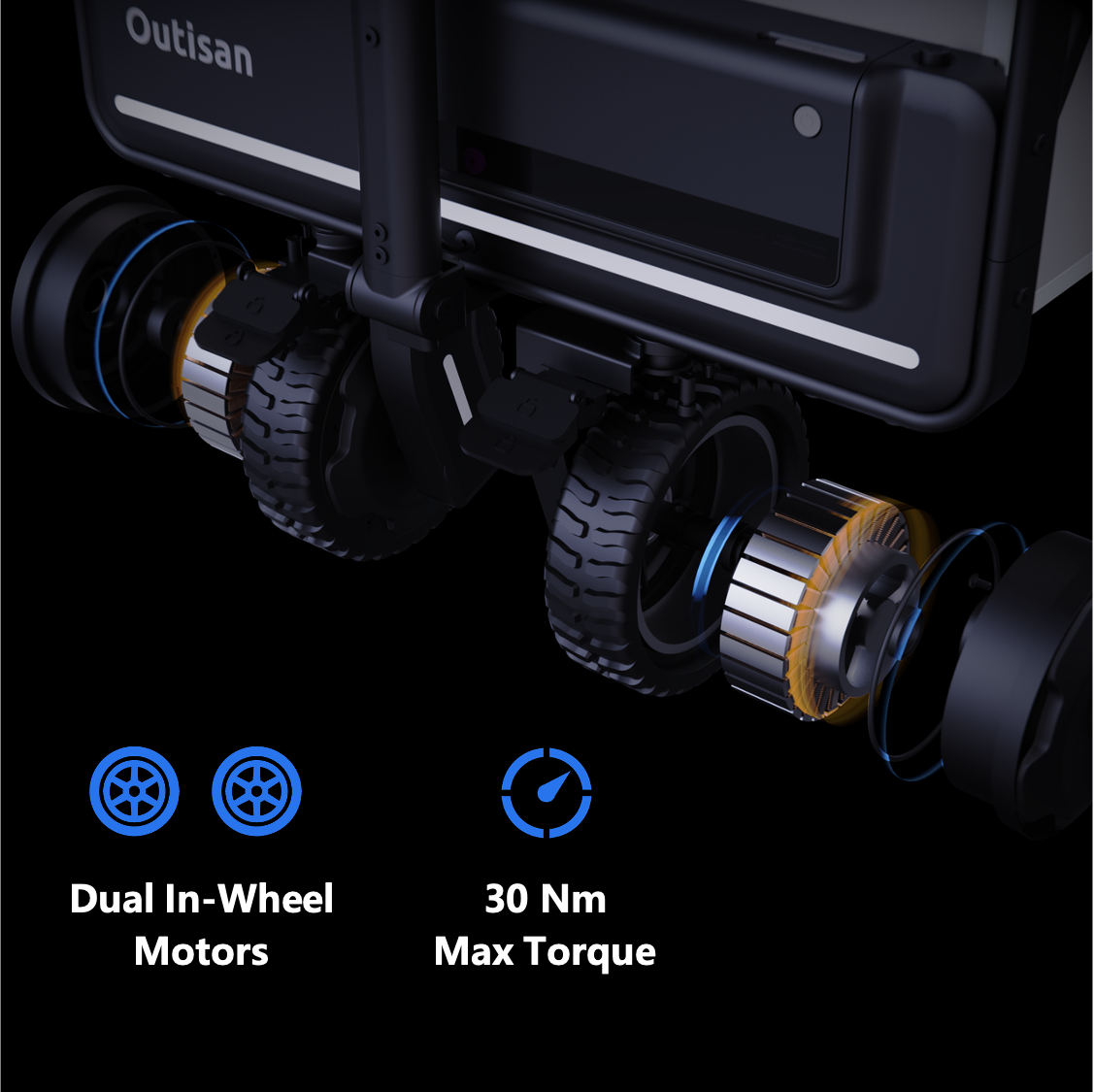 Outisan's electric wagons use advanced brushless direct-drive motors to provide powerful uphill assistance, reducing effort by up to 90%. These motors offer high torque, durability, and quiet operation, making them ideal for outdoor adventures.