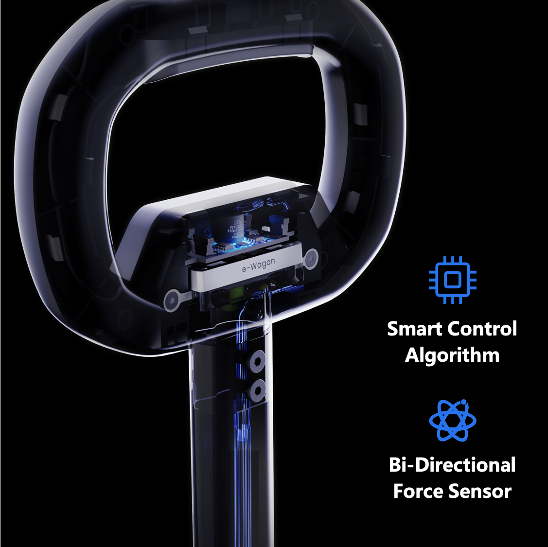 “It combines the power to move approximately 100kg of luggage with just one finger and the safety of stopping immediately when you let go of the handle.”