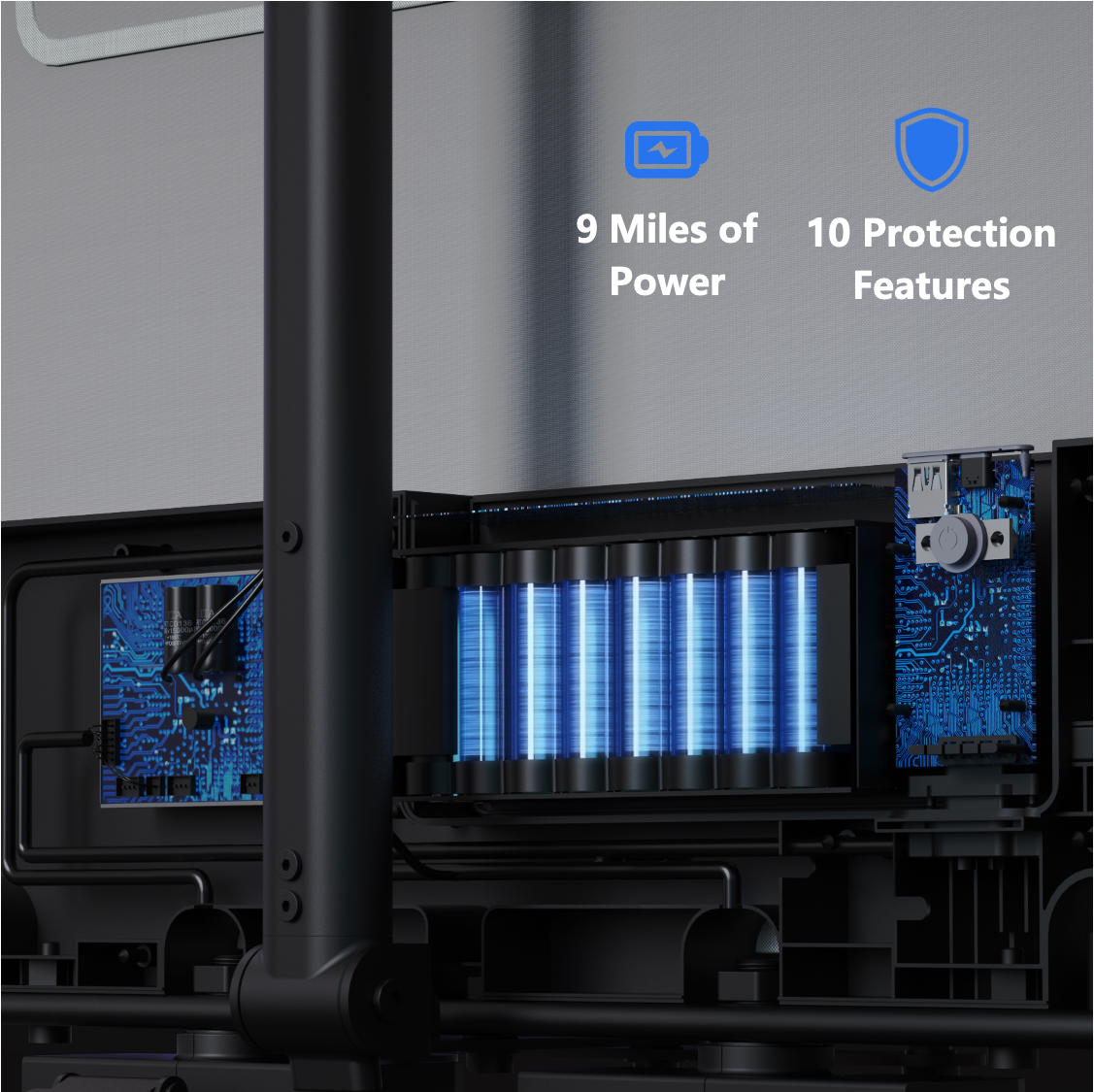 The e-Wagon Air prioritizes range with a 135Wh battery and energy recovery system, offering a 5-mile range. Its high discharge rate and advanced BMS ensure powerful performance and safety, making it ideal for diverse terrains.