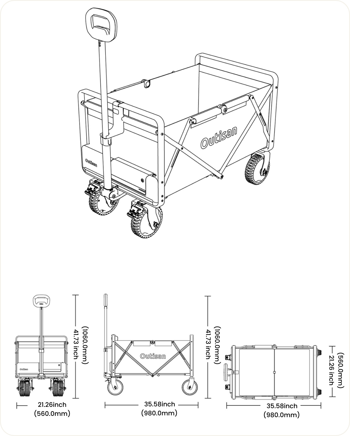 •オフロード対応:広めの高密度ラバータイヤにより、土地、芝生、坂道、砂地など、どんな地形でもスムーズに走行可能。