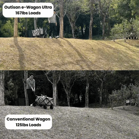Effortlessly navigate slopes and conquer inclines of up to 15° with itsuphill power assist feature, making hauling up to 200 pounds like abreeze. Save up to 95% of your effort, allowing you to fully immerseyourself in the beauty of nature or focus on your tasks without the burdenof heavy gear.
